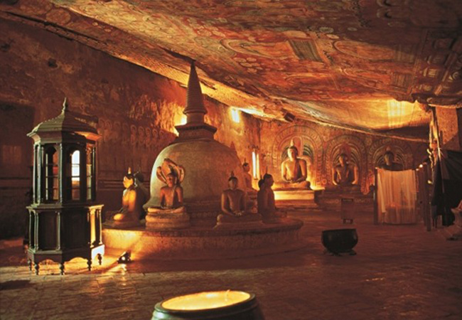 Afterwards, you will move on to the Dambulla Rock Temple, one of the most impressive and best-preserved cave temples in all of Sri Lanka. Made up of five caves this UNESCO World Heritage Site boasts remarkable mural paintings, covering over 2,000 square metres of wall and ceiling with roughly 150 depictions of Buddha. Each cave offers its own unique treasures, from the monumental reclining statue of Buddha in the Devaraja Viharaya Cave, to the ornately decorated Maharaja Viharaya Cave
